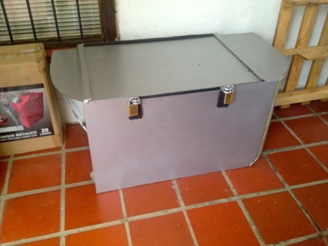 Vorheriges Bild Nächstes Bild IMG_4810 Diese schwere Metallkiste habe ich mir extra bauen lassen. Genau an den Kofferraum angepasst. Caja Fuerte