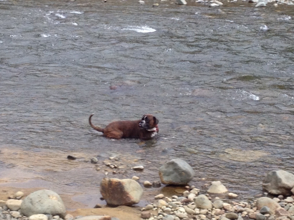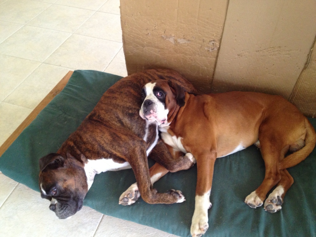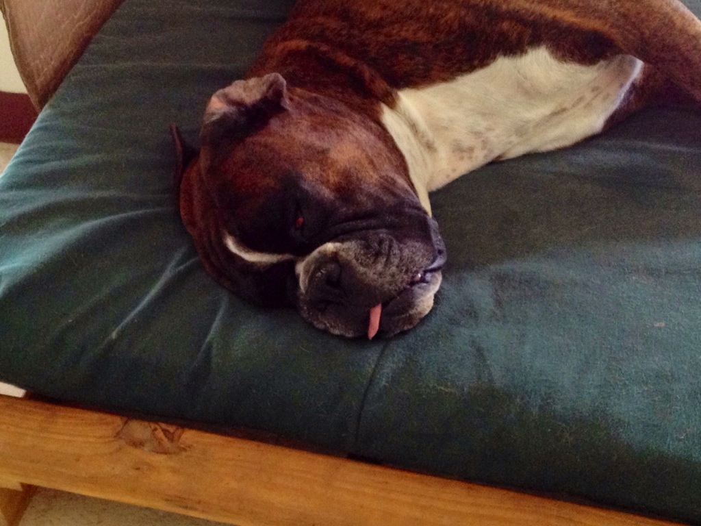 Bruno verbrachte das Unwetter unter dem Tisch im Freien, Oskar verschlief es schnarchend. Der Hund hat Nerven….!