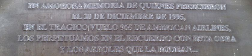 Am Parkeingang findet sich diese Erinnerungstafel an einen Flugzeugabsturz in Cali