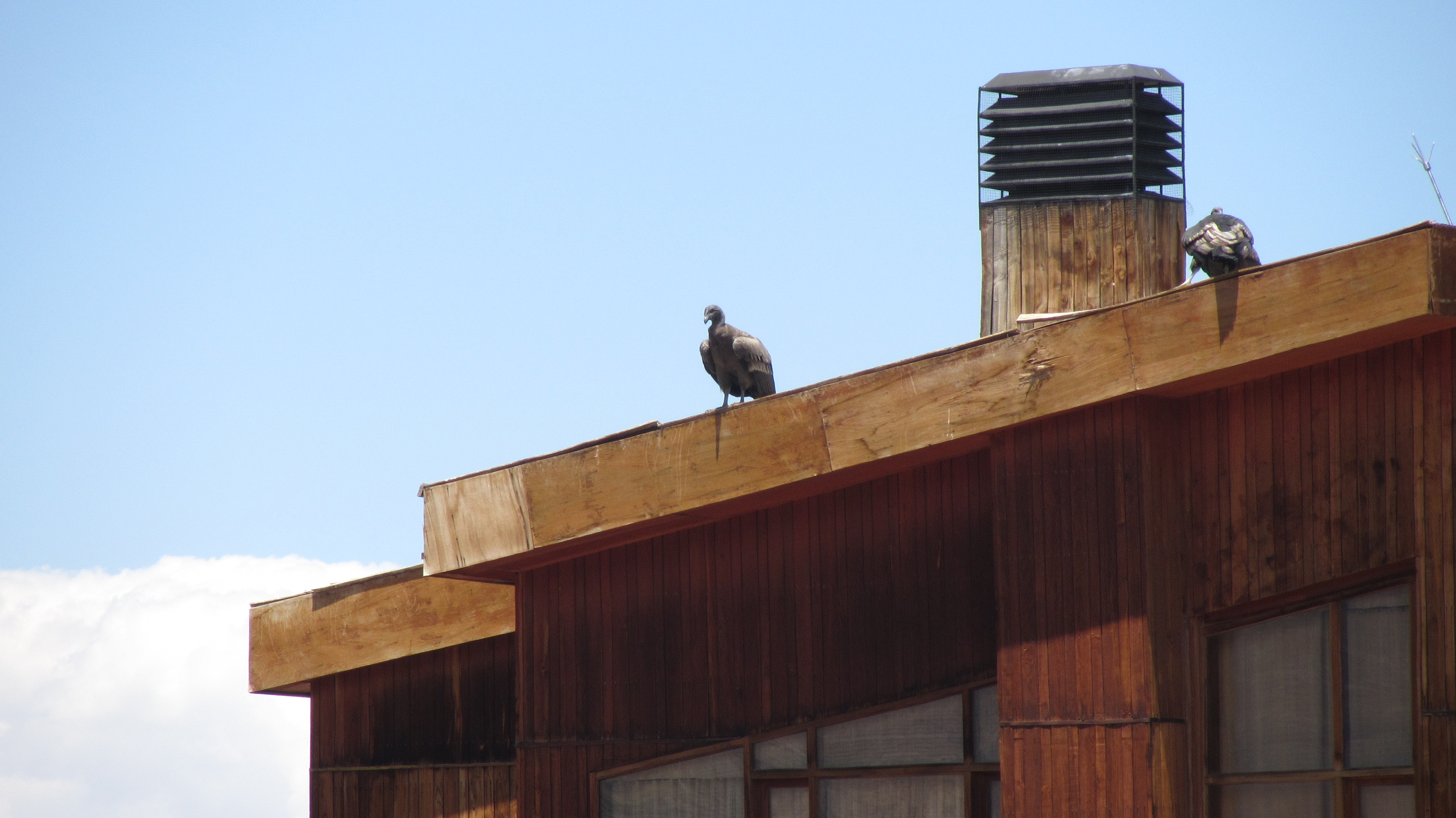 Kaum angekommen, konnten wir auch schon die Condore starten sehen. Drei der Vögel saßen auf dem Dach eines Hotelkomplexes und stürzten sich von dort aus in die Tiefe. Beeindruckende Flieger! Absolut ruhig und gleichmäßig, nahezu ohne Flügelbewegungen ziehen sie ihre Bahnen.